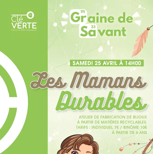 Atelier de fabrication de bijoux à partir de matières recyclables. Enfants à partir de 6 ans Réservation obligatoire avant le 24 avril