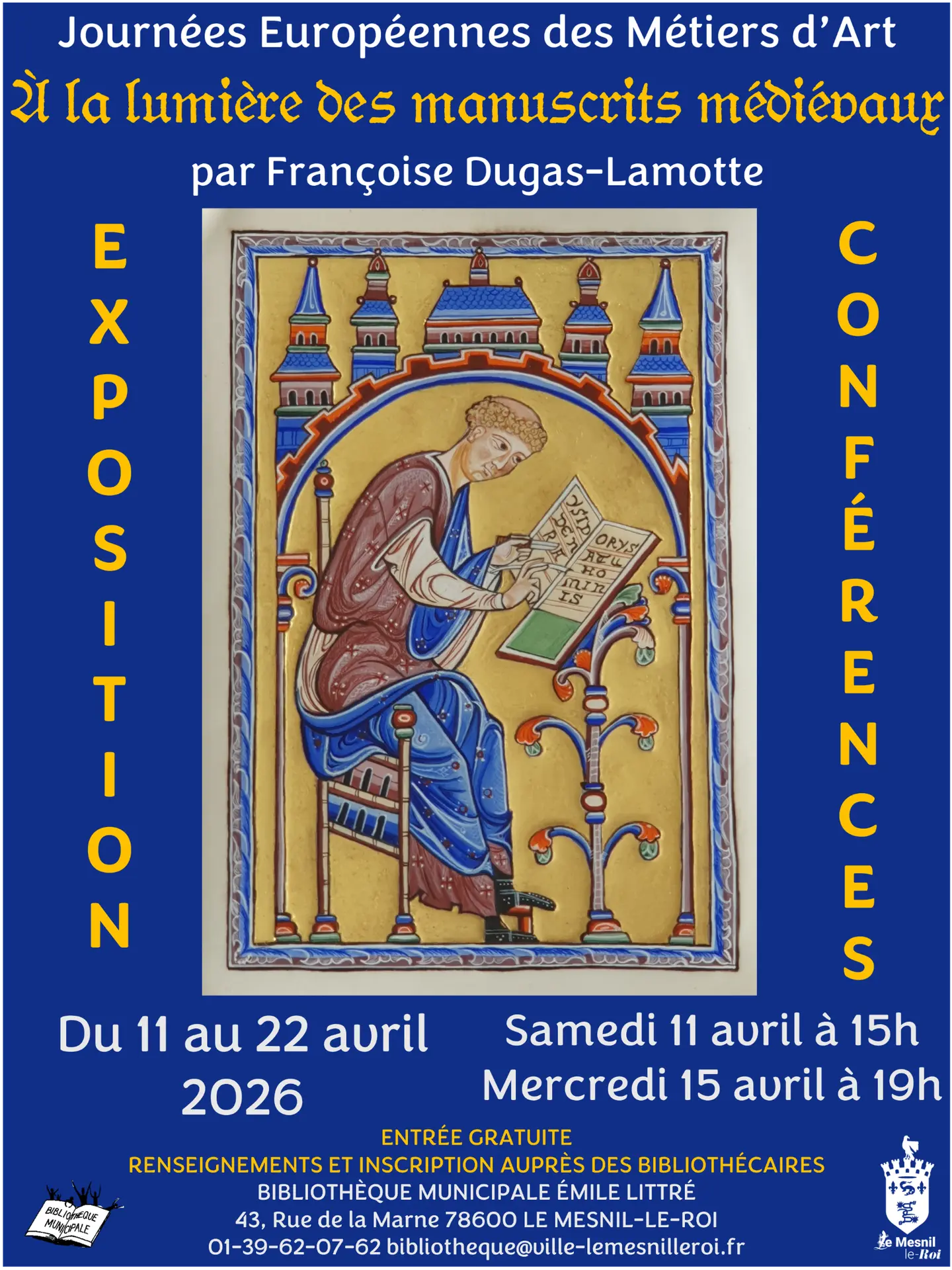 Dans le cadre des journées européennes des métiers d’art, Françoise Dugas-Lamotte propose une exposition ainsi que deux conférences sur les manuscrits médiévaux.