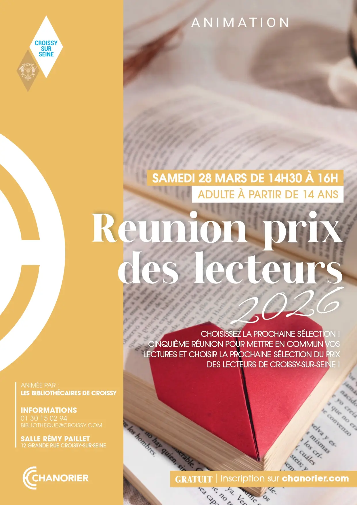Cinquième réunion pour mettre en commun vos lectures et choisir la prochaine sélection du prix des lecteurs de Croissy-sur-Seine !