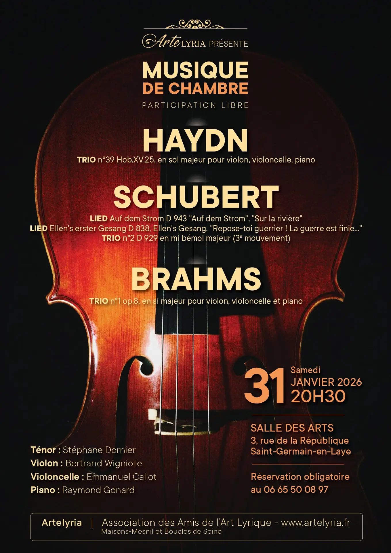 Artelyria a le plaisir de vous inviter à un récital de musique de chambre avec ténor + trio instrumental.
