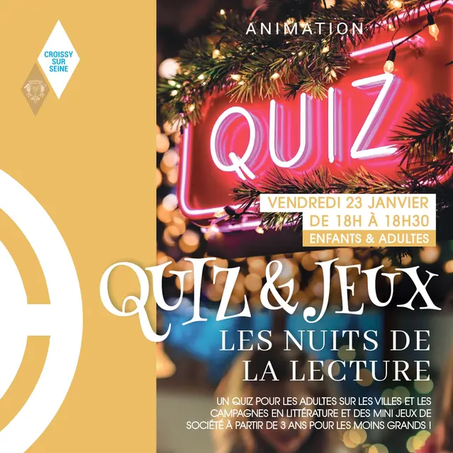 Info et réservation : Bibliothèque 01.30.15.02.94 – bibliotheque@croissy.com