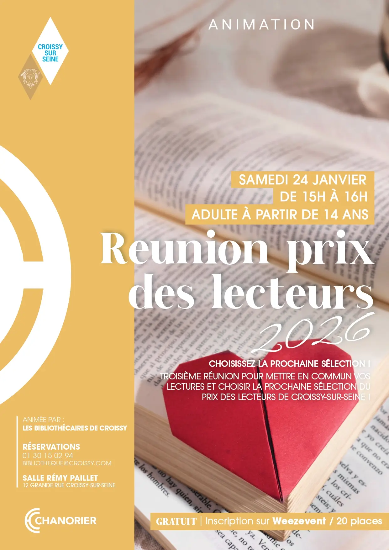 Info et réservation : Bibliothèque 01.30.15.02.94 – bibliotheque@croissy.com